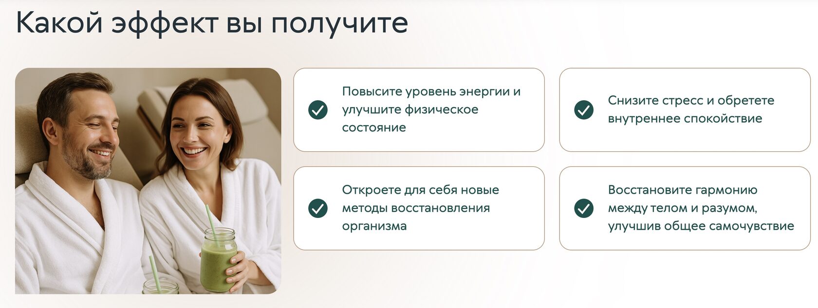 В результате вы получите снижение веса, омоложение, прилив энергии. Такие периодические короткие курсы позволят сохранить высокий тонус организма, поддерживать достаточный уровень качества повседневной жизни.