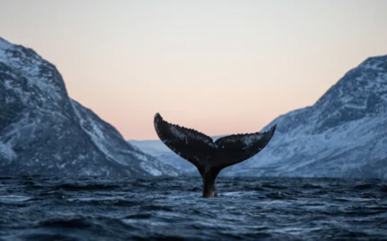- С апреля по август: это основной сезон наблюдения. Вероятность увидеть китов наиболее высока в мае и начале июня, когда они следуют за рыбой, которая нерестится в это время.